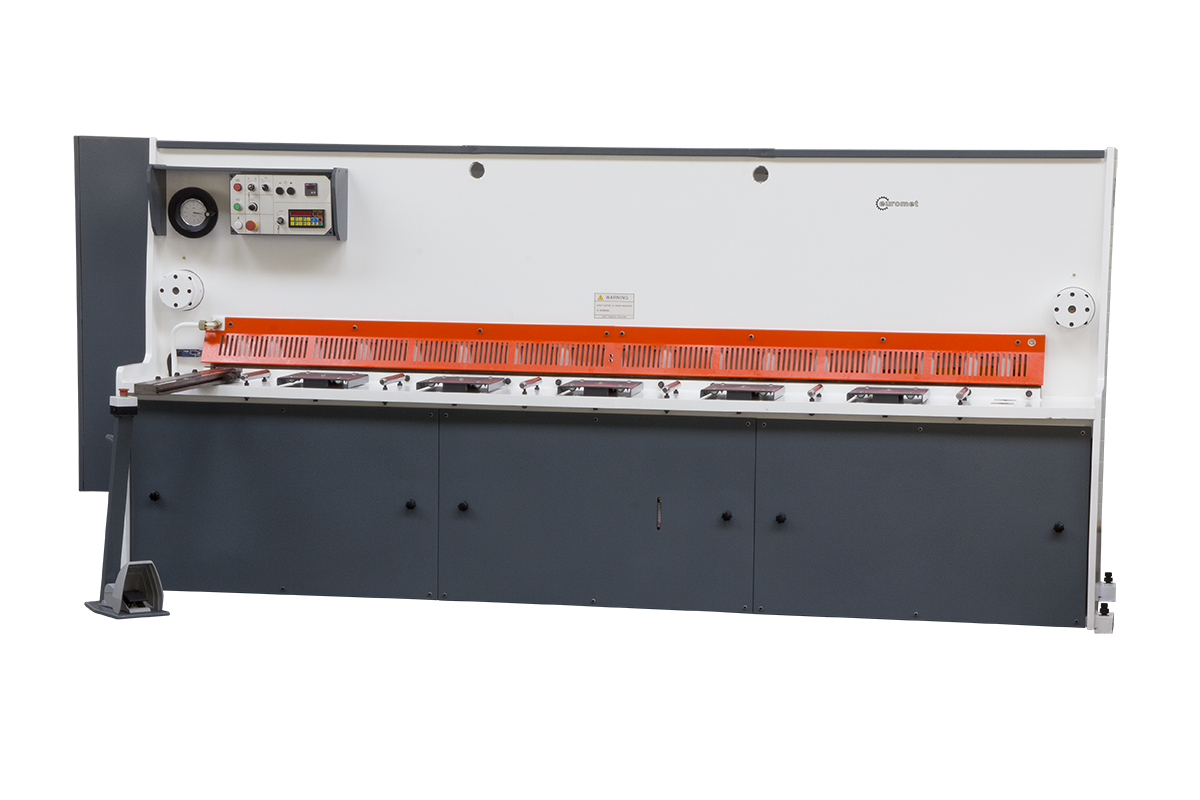 Hydrauliczne nożyce gilotynowe EUROMET HGO 31/6,35 to maszyna gdzie nóż zainstalowany jest na dwóch siłownikach z jednej strony. Istnieje możliwość regulacji ustawienia kąta natarcia noża. Dzięki tej funkcji podczas cięcia cienkich blach i wąskich pasków można eliminować zjawisko skręcenia blachy. Maszyny oparte na dokumentacji belgijskiej firmy LVD. Bardzo dobra jakość wykonania maszyn oraz użytych podzespołów producentów europejskich Bosch Rexroth, Siemens, Telemechanique gwarantują długą bezawaryjną eksploatację maszyny.