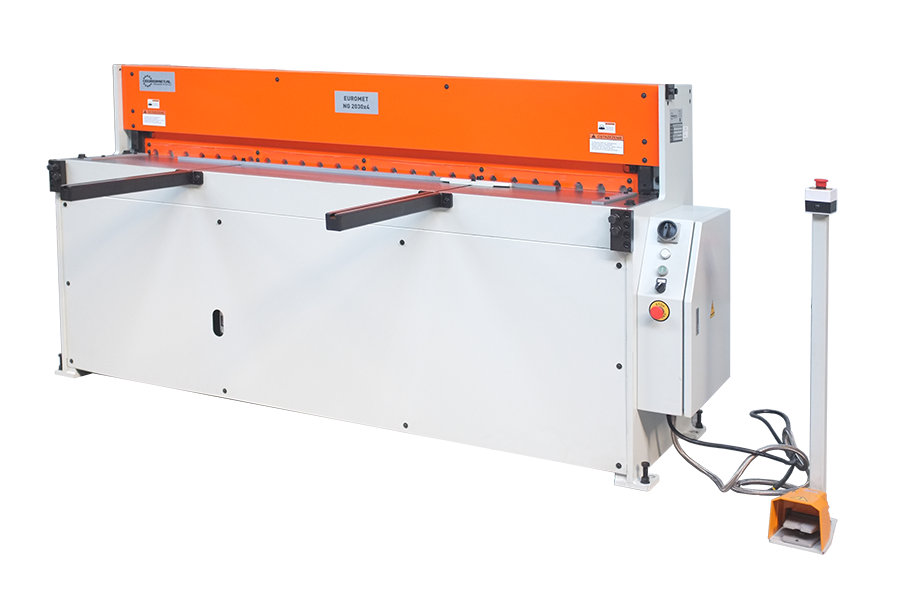 Hydrauliczne nożyce gilotynowe EUROMET NH 2030x4 zapewniają szybkie, precyzyjne cięcie arkuszy blach o grubościach do 20mm. Urządzenia do prostoliniowego cięcia blachy są jednym z podstawowych wyposażeń zakładów produkcyjnych pracujących przy stali. Najpopularniejsze gilotyny to maszyny typu Swing-Beam z wahliwą belką. Konstrukcja jest prosta i niezawodna. Regulacja szczeliny między nożami zapewnia dostosowanie do danych grubości blach.