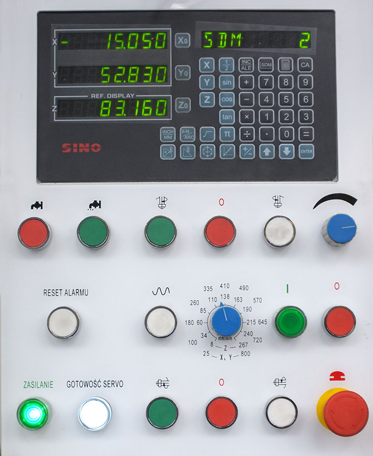 Frezarko-wiertarka produkcyjna EUROMET FW40S, półautomatyczna wyposażona we wrzeciono pionowe skrętne z wysuwną pinolą, prędkość obrotowa wrzeciona pionowego regulowana płynnie, wrzeciono poziome prędkość regulowana przez przekładnię zębatą. Stół o wymiarach 1650x660 [mm]. Posuwy stołu w 3 osiach realizowane przez serwomotor produkcji japońskiej firmy Yakasawa. Panel sterujący umożliwia w prosty sposób płyną regulację posuwów, prędkości obrotowej wrzeciona pionowego oraz odczyt aktualnego położenia stołu poprzez odczyty cyfrowe w 3 osiach. Frezarka półautomatyczna eliminuje potrzebę mechanicznego ustawiania przełożeń posuwów co sprawia, że praca operatora jest przyjemniejsza i szybsza, a co za tym idzie bardziej ekonomiczna. Uproszczony system przeniesienia sprawia, że maszyna charakteryzuje się wyższą bezawaryjnością, a jej ewentualne naprawy są szybsze, tańsze i prostsze.