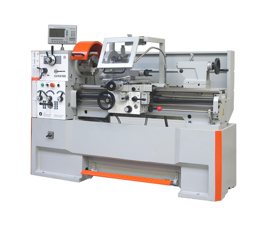 Tokarka uniwersalna EUROMET D410x1000 przeznaczona do produkcji małoseryjnej oraz do pracy w narzędziowniach lub zakładach utrzymania ruchu. Żeliwny odlew podstawy łoża gwarantuje bardzo wysoką sztywność i stabilność maszyny.