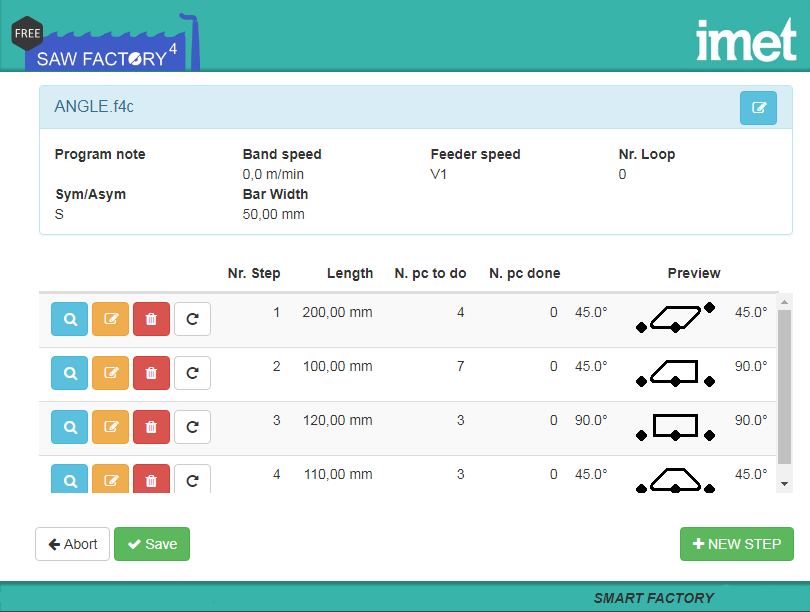 Dodając Imet Industry 4.0 Ready - SAWFACTORY do przecinarki taśmowej i piły tarczowej (która obejmuje instalację rejestratora danych z technologią „SafeConnect”), uzyskasz dostęp do aplikacji internetowej SAWfactory z każdego urządzenia, dzięki czemu będzie można w pełni zdalnie zarządzać procesami cięcia, eksportowania statystyk i raportów z dostępem do teleserwisu Imet w celu zdalnego wsparcia technicznego.
