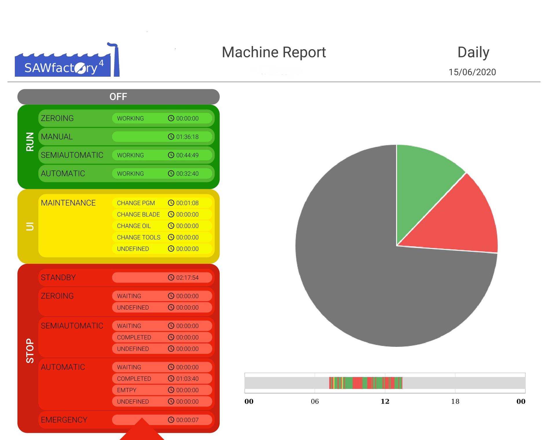 • Codzienne raporty dotyczące wydajności maszyn ze statystykami i zaawansowanymi danymi
