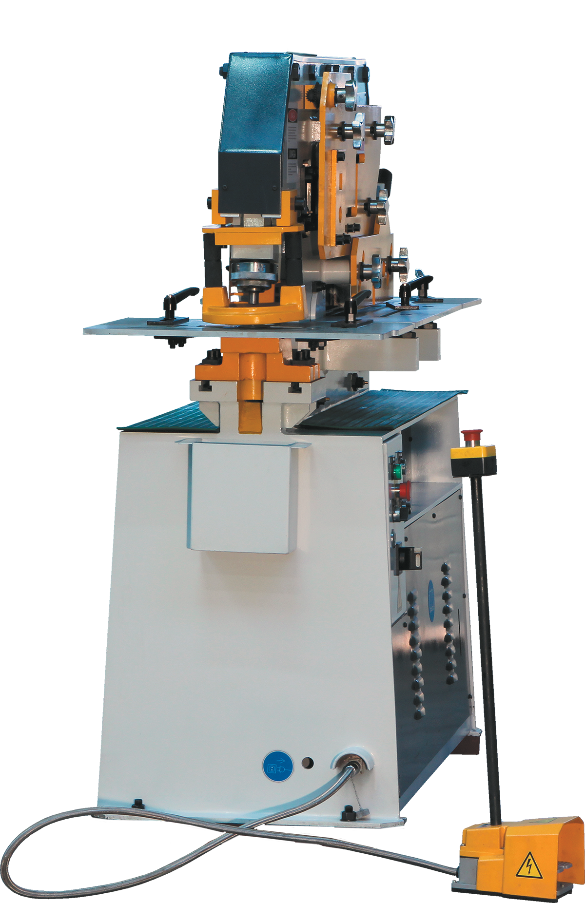 Nożyce Iron Worker IW55 pozwalają na wykonanie czynności: wybijanie; przecinanie pręta; przecinanie profili U, I ,T; przecinanie kątowników; przecinanie płaskowników.