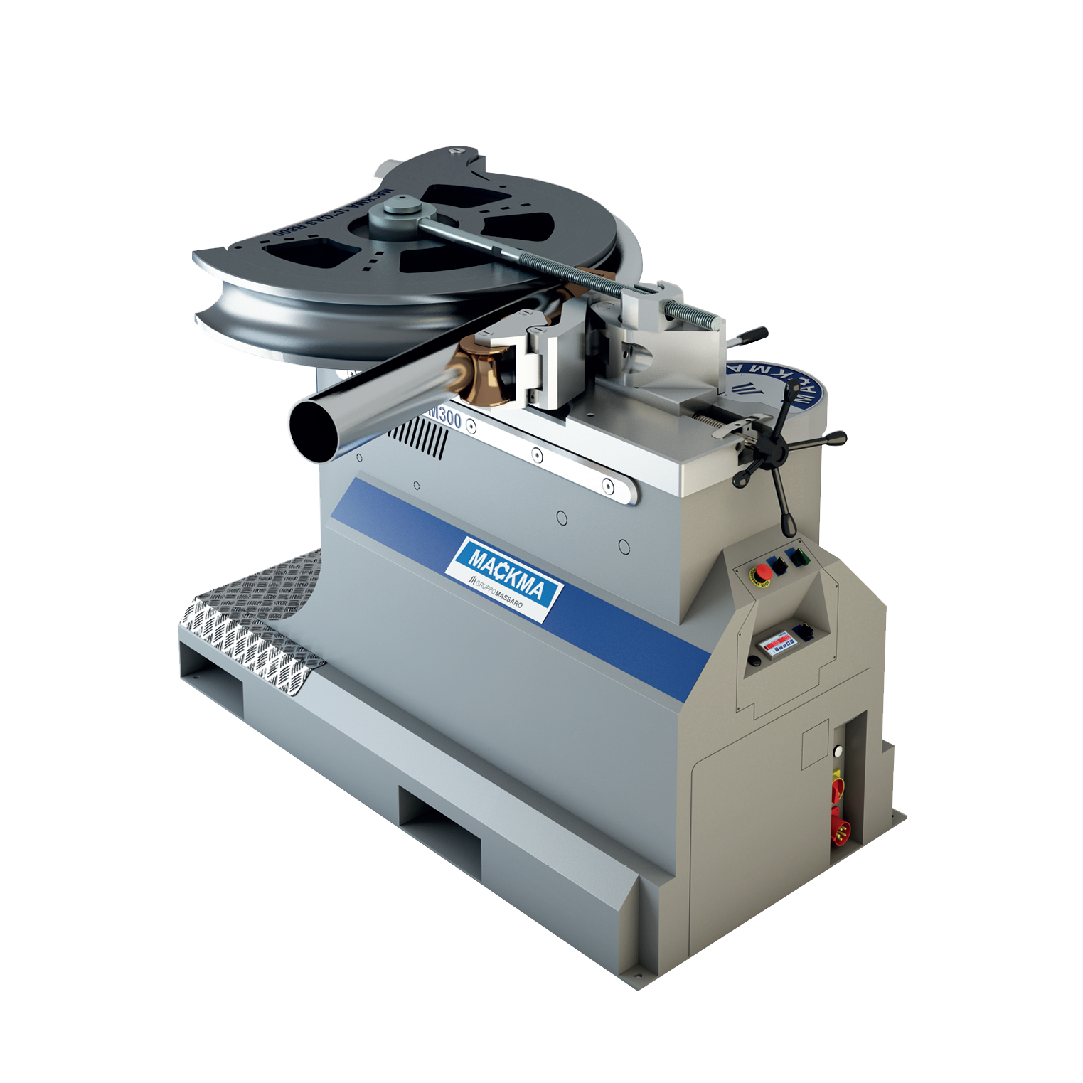 MACKMA BM300 jest jedyną beztrzpieniową giętarką do rur, która pozwala na gięcie w prawo i w lewo. Jego innowacyjna konstrukcja pozwala giąć rury o średnicy do 273 mm dla grubości ścianki 18,26mm i maksymalnym promieniem w osi rury wynoszącym 1700 mm.