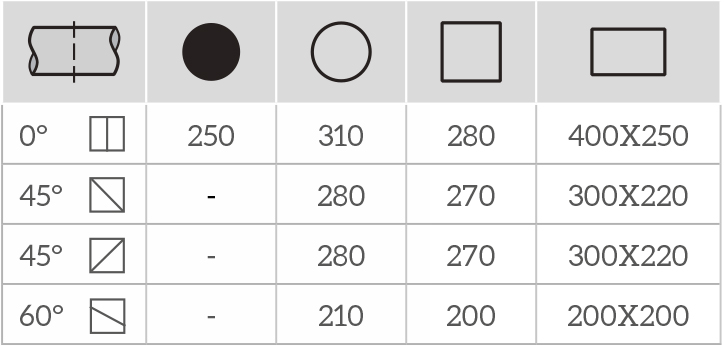 • Cięcie pod kątem: w prawo 0° - 45° - 60°; w lewo - 45°