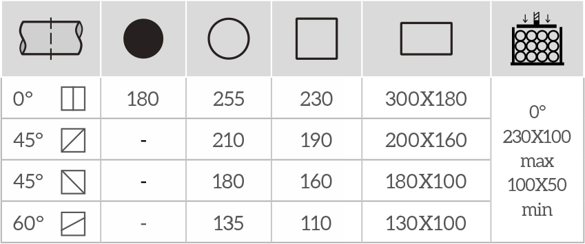 • Cięcie pod kątem: w prawo 0° - 45° - 60°; w lewo - 45°
