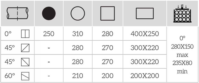 • Cięcie pod kątem: w prawo 0° - 45° - 60°; w lewo - 45°
