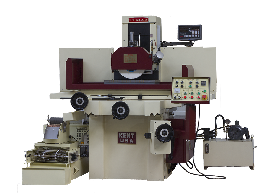 Automatyczna szlifierka do płaszczyzn KGS 1224 AHS produkowana jest przez znaną od lat na rynku firmę KAITE. Napęd dla osi Y / Z silnik serwo Siemens sterowany przez PLC Siemens, podziałka posuwu poprzecznego 0,01mm, podziałka posuwu auto (Z - w dół) 0,002, dla osi Y śruba kulowa produkcji chińskiej, a dla osi Z - śruba trapezowa. Charakteryzuje się nowoczesną i stabilną konstrukcją. Korpusy główne wykonane zostały jako precyzyjne odlewy żeliwne. Dzięki temu konstrukcja jest odpowiednio ciężka i sztywna, oraz tłumi drgania. Szlifierka posiada bardzo bogate wyposażenie standardowe. Przesuw wzdłużny stołu realizowany jest hydraulicznie, z płynną regulacją prędkości.