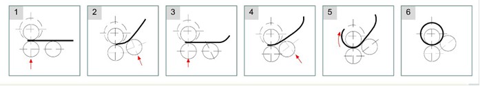 Minimalna średnica zwijania 1,5 x (średnica) górnej rolki, przy granicy plastyczności materiału 24kg/mm2 (np. stal węglowa)