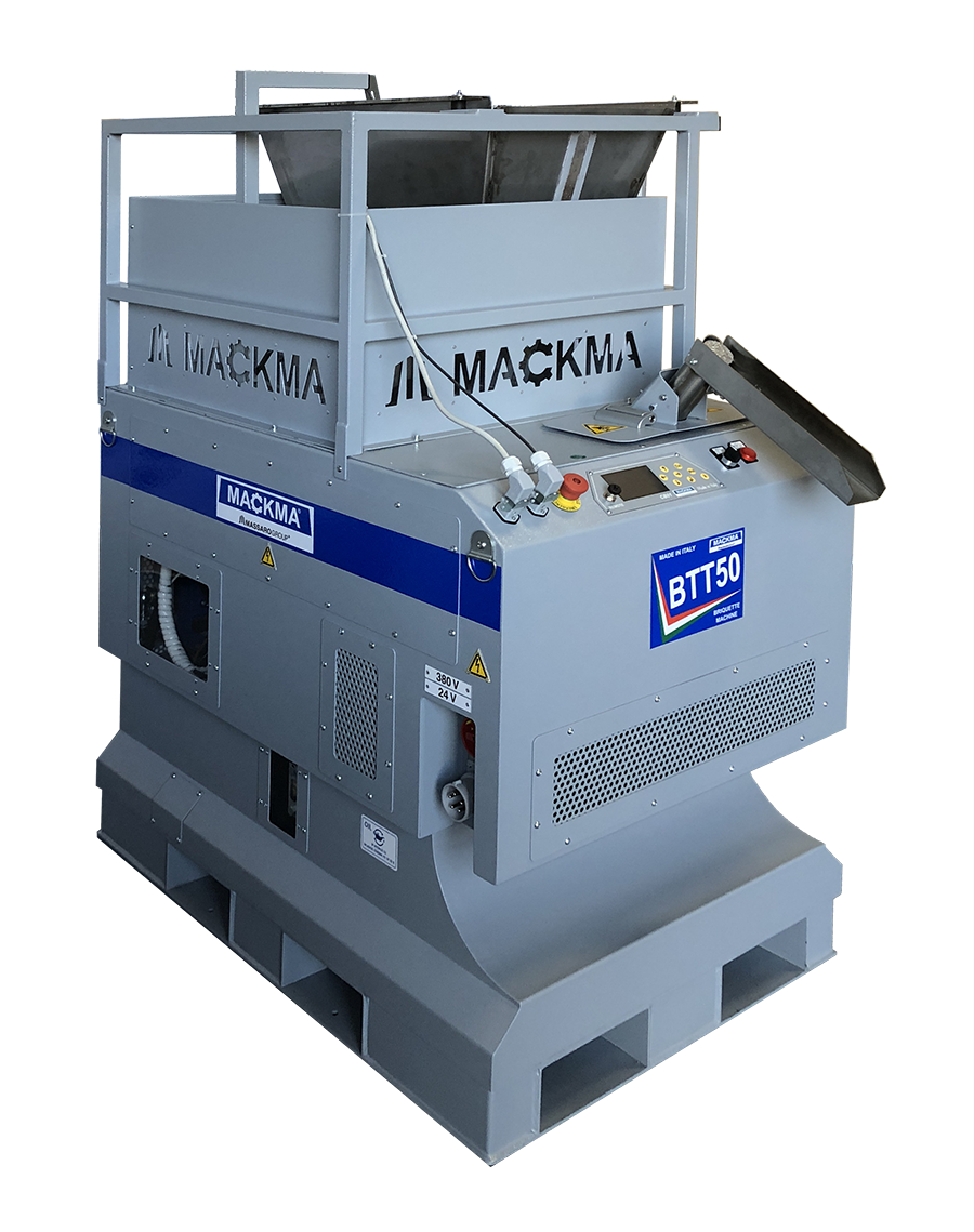 Brykieciarka MACKMA BTT50 (maszyna do zagęszczania wiórów metalowych) pozwala na uzyskanie dużych oszczędności związanych z przechowywaniem i utylizuje odpady metalowych. Wstępnie oczyszcza z oleju po obróbce metali.